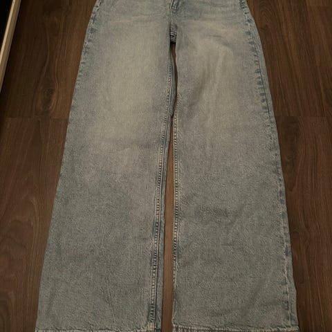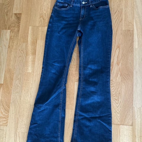 Lindex Denim bukse i størrelse 164 for jente. Buksen er laget av denim materiale og har en blå farge.