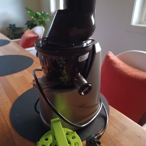 Passer perfekt til å lage juice, smoothie og sorbet av grønnsaker og frukt. Samt kan man lage melk av nøtter, det har jeg aldri prøvd. Det som er bra med denne er at den tar hele grønnsaker som epler osv, slik at man ikke trenger å kutte de opp. I tillegg til at den kaldpresser, ved å sakte presse saften ut.