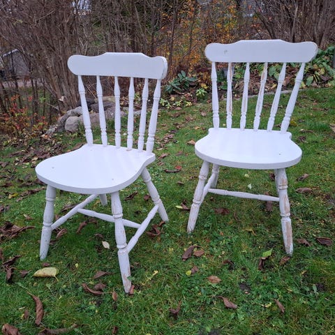 Furumøbler til kjøkken. Bord med 2 klaffer til, en liten sittebenk og 2 stoler.