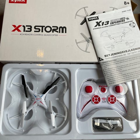 Parrot Bebop Drone Skycontroller drone i rød farge. Leveres med fjernkontroll og beskyttelsesrammer for propeller. Egnet for luftfotografering og droneflyvning.