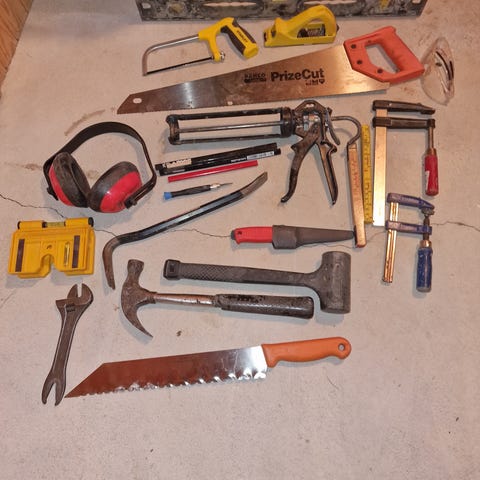 Verktøypakke tømrer. Her er det du trenger for å starte som tømrer/ snekker, eller kanskje du bare ønsker deg ei solid verktøykasse. Kan sendes med posten for enkel sporing mot at kjøper betaler frakt (250kr)