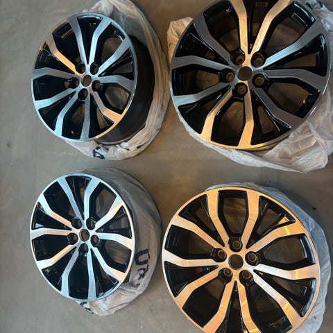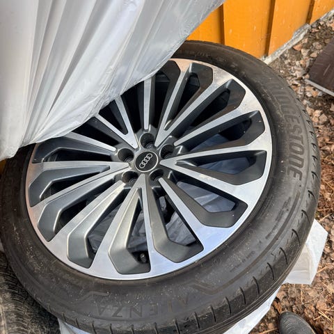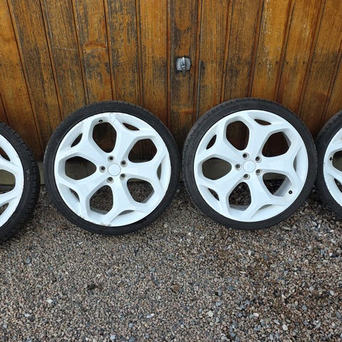 Pent sett med 20" originale Ford-felger, tatt av en 22 mod Ford Explorer. Felgene er stort sett fine, den ene har en skramme (se bilde 5). Sitter på sommerdekk av typen Michelin Primacy 255/55R20 (prod 3520) som er slitte og holder i beste fall én sesong til, avhengig av av kjørelengde. Dekkene ligger på lager så får ikke målt nøyaktig mm, men se sliteindikator på bilder.