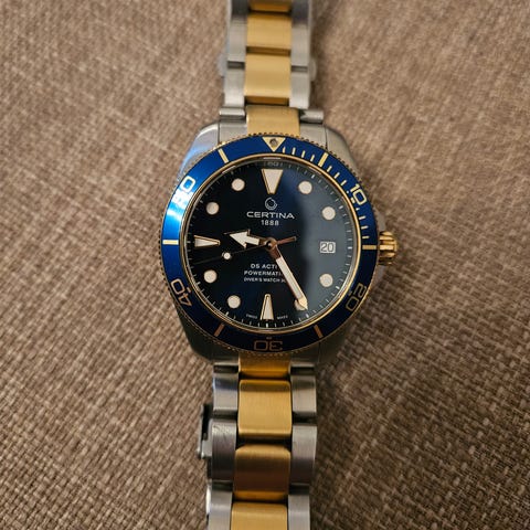 Certina herreklokke med blå urskive og stål lenke