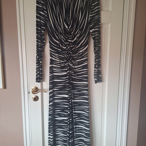 Vakker kjole som passer også større størrelser da den er oversized. Kjolen er et blikkfang og har lommer i siden. Brukt i et bryllup.