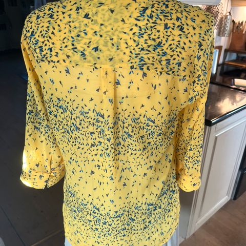 OKER/BRUN/SORT/GULL MØNSTRET BLUSE»,STR.40