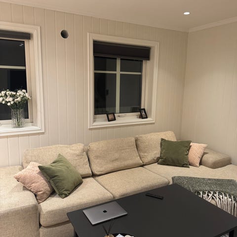 7-seters hjørnesofa i U-form selges til aksjekurs! Dekslene er nyvasket. Veldig behagelig, kan også brukes som sengesofa da det er veldig behagelig å sove på. det er en liten bulk på stolarmen, men det er enkelt og billig å fikse det. Sofaen selges uten det grønne omslaget og de ekstra putene og må hentes til 25. januar. Send meg en melding for spørsmål!😊 brukte den bare 2 måneder, men jeg flytter til et mindre hus og det passet ikke . Pris omsettelig.