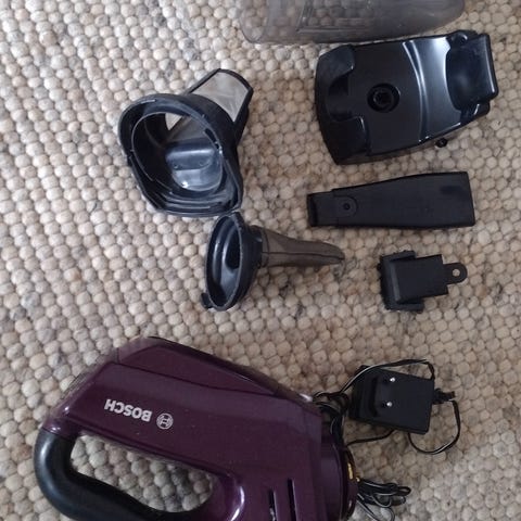Dette er en Bosch trådløs støvsuger, modell Ready’y Lithium 18V 2-i-1.