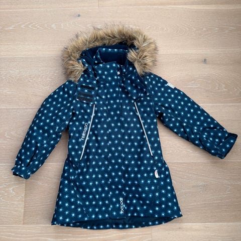 Reima barnejakke i størrelse 110 for jenter. Jakken har flerfarget mønster og er laget av polyamid materiale.