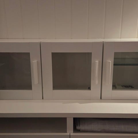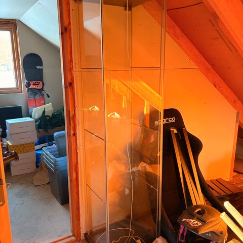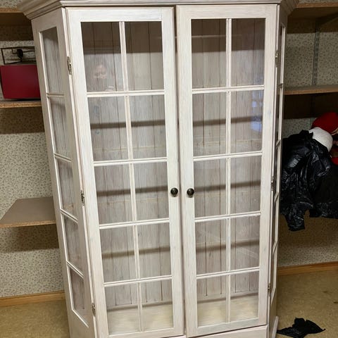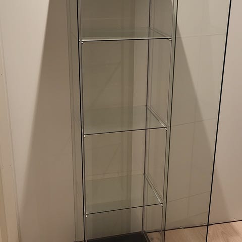 Glass skap med lys og to hyller