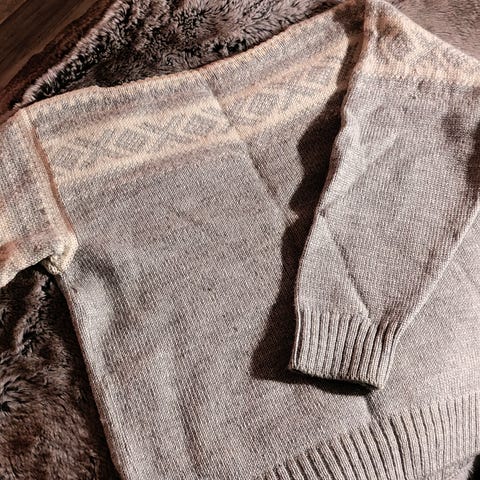 Dale of Norway genser i størrelse M, laget av ull. Genseren er svart med mønster langs ermene og midt foran. Passer for kvinner.