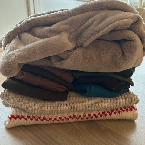 STOR KLESPAKKE - 44 stk tynne gensere str. 1–5 år – 250 kr (må hentes)