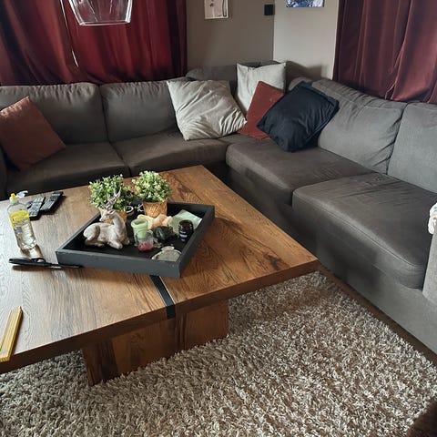 Pent brukt hjørnesofa, mørk grå farge