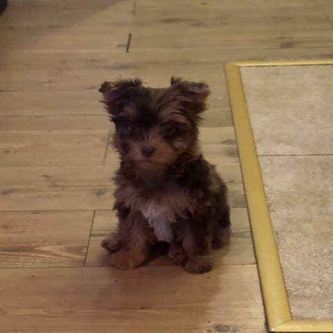 En vakker hunn Yorkshire Terrier venter på et godt og permanent hjem