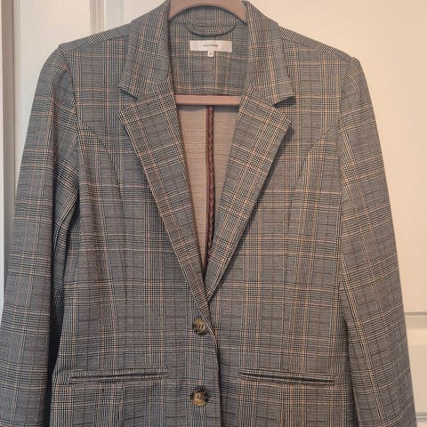Lett, fóret jakke/blazer, grå med lyse smale striper. Ikke brukt.
