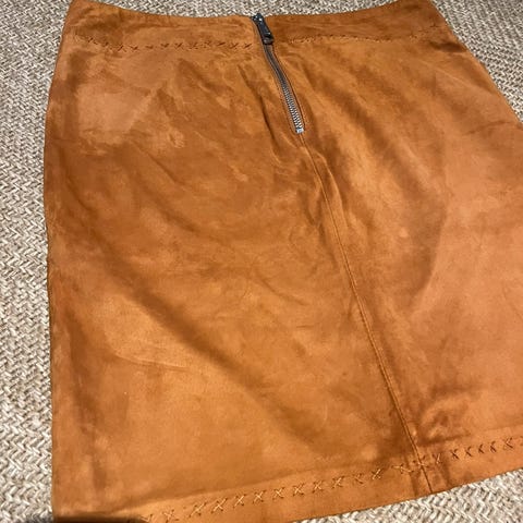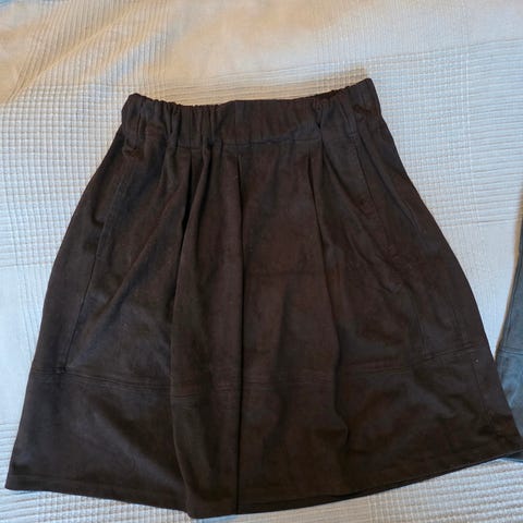 Lite brukt brunt skjørt i mykt stoff, velourlignende kvalitet .