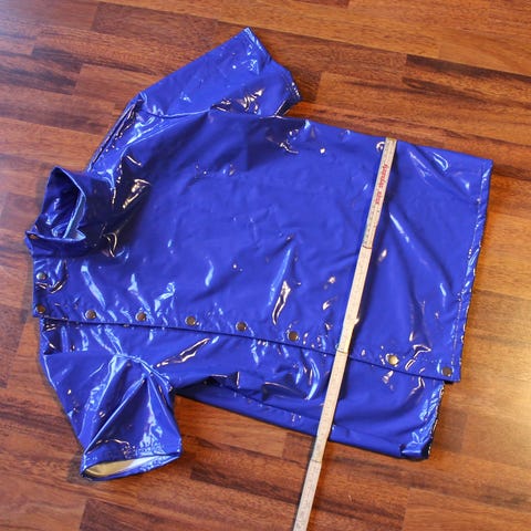 Flott jeans-bukse fra den London-baserte latex-produsenten Libidex, kjent for god kvalitet. Lite brukt da buksen er for vid. Fargen er "Metallic petrol blue". Lengde: 33".