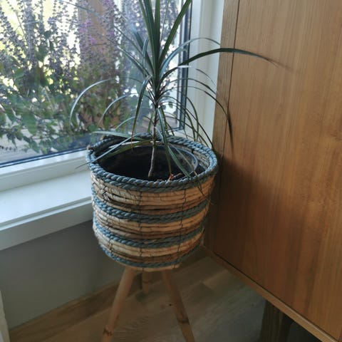 Dracaena marginata er en stueplante med lang, tynn stamme og smale grønne blader med røde kanter. Planten er egnet for innendørs bruk og krever moderat lys og vanning.