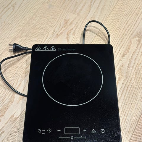 Brukt induksjon platetopp. 3 små og 1 stor kokesoner. Touch betjening. Uten stikkontakt. 7 kW. Barnesikring. Timer. Funker fint.