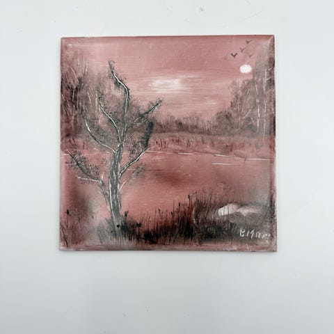 Håndlaget av Norsk keramiker, 10x10cm pr flis, tykkelse 1,2 cm