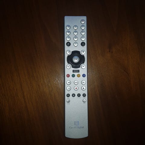Pent brukt fjernkontroll til dekoder med opptaksfunksjon.