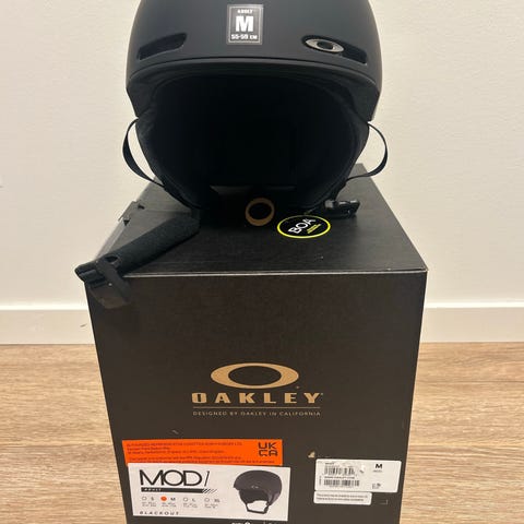 Oakley MOD1 skihjelm i blå farge. Hjelmen er designet for å gi beskyttelse ved vintersport og har et moderne utseende. Passer til bruk ved ski- og snowboardaktiviteter.