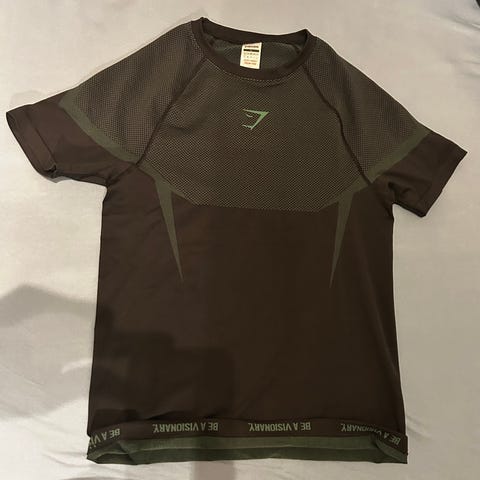 Gymshark T-skjorte i svart farge, størrelse M for herre. T-skjorten har kort erme og er laget for å fremheve muskler med designet. Har en ny som selges for 1100 og en brukt for 900kr