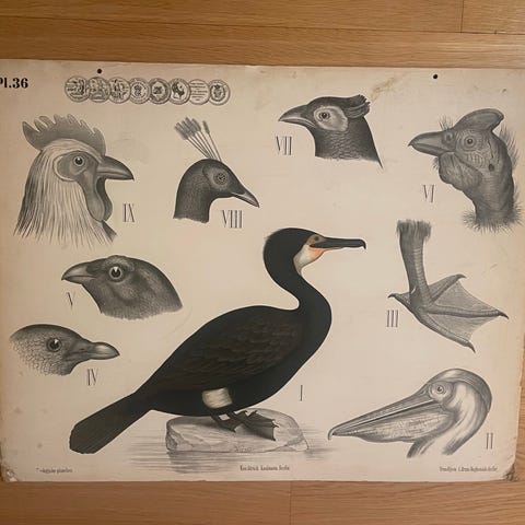 Gammel skoleplansje med fugler selges.