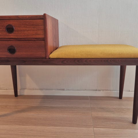 Kjempevakkert og stilrent lite møbel fra Elegante Møbler, Vegsund – et klassisk eksempel på norsk møbeldesign fra midten av 1900-tallet.