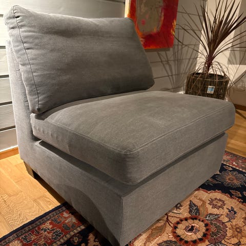 Sofaen selges fordi vi ikke har plass til den.
