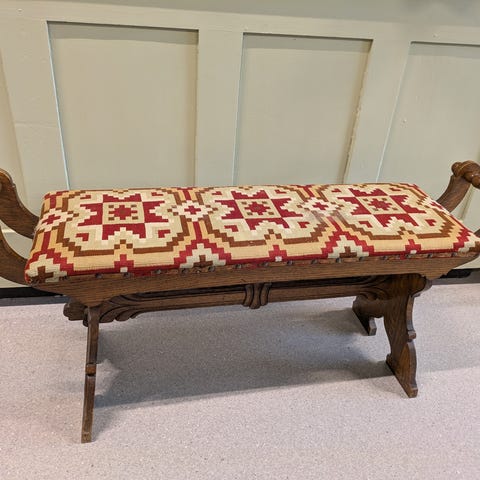 To eldre lenestoler og rundt bord selges. Stolene er fra 1940-tqllet, vi kjenner ikke alder på bordet. Synlig bruksslitasje på stolene, det er en flekk på bordplaten.