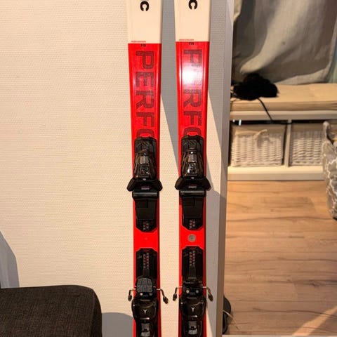 Elan slalomski 118 cm lange, lite brukt, m staver. Selges for kr 2500..