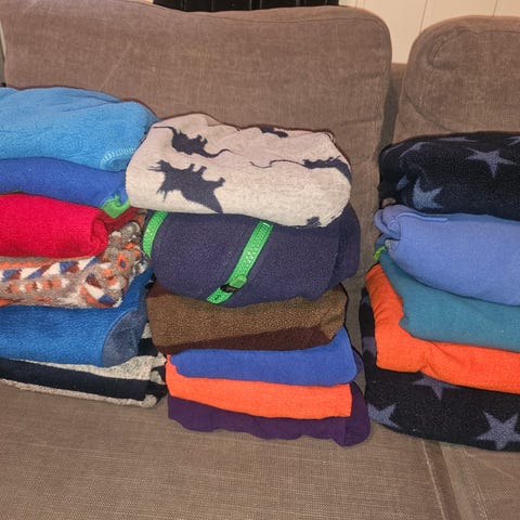 Selger 5 stk pent brukte fleecebukser til barn, størrelse ca. 1–5 år.