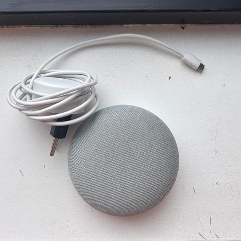 Pent brukt Google Home Mini selges. Smart høyttaler med Google Assistent som lar deg styre musikk, smarthjem-enheter, stille spørsmål, sette på alarmer og mye mer.Tar liten plass og er enkel å sette opp.