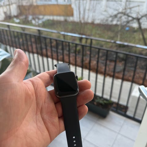 Apple Watch Series 5 44mm GPS smartklokke med svart reim. Leveres med lader og magnetisk ladekabel.