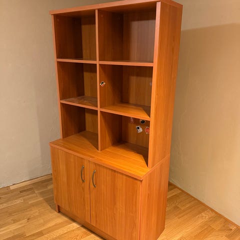 Hylle som kan deles i to deler eller brukes slik som på bilde. God plass til service, bøker og pynteting. For meg ser det ut som teak, men jeg kan ikke garantere det.