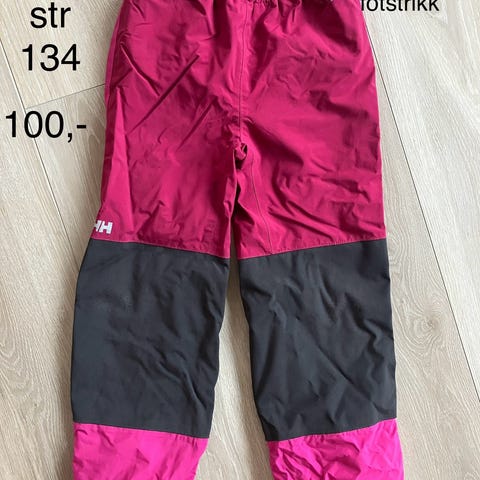 Helly Hansen yttertøy. Har to bukser i str 140 og en jakke str 152, alt nytt med lapp. Jakka er liten I str og buksa stor/normal, så de passer sammen.