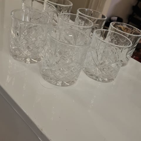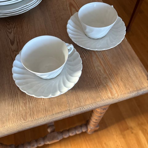 Nydelig lys gul farge med rikt dekorert gull kanten. 12skt. 1 av de er lit skadet.