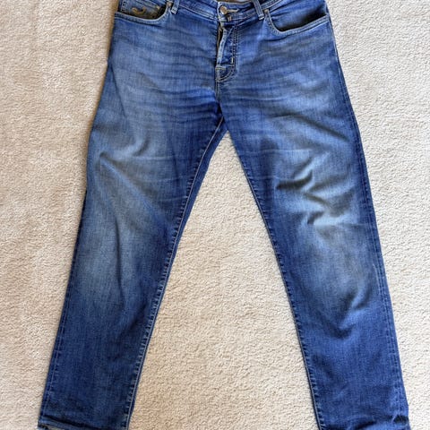 Selger et par eksklusive mørkeblå jeans fra Jacob Cohën, modell Style 622 (NICK). Nypris ca 6000,-
