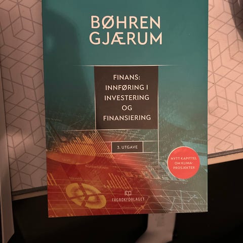 Bøhren Gjærum Finans Innføring i investering og finansiering bok. Tekstbok som dekker grunnleggende konsepter innen finans, investering og finansiering. Egnet for studenter og fagpersoner som ønsker en innføring i emnet.