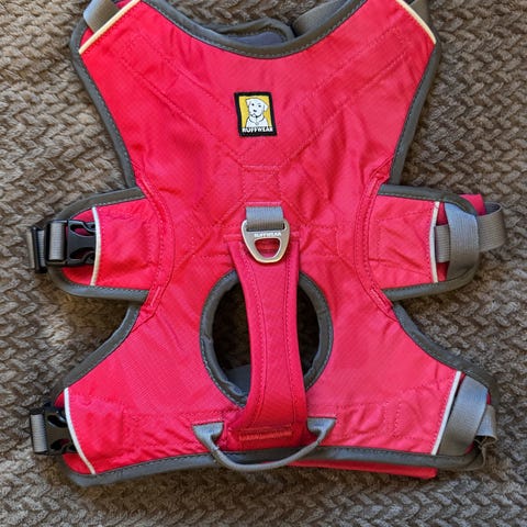 Ruffwear hundesele i sort farge. Selen har justerbare stropper og flere festepunkter for bånd. Designet for å gi god støtte og komfort til hunden under turer og aktiviteter.