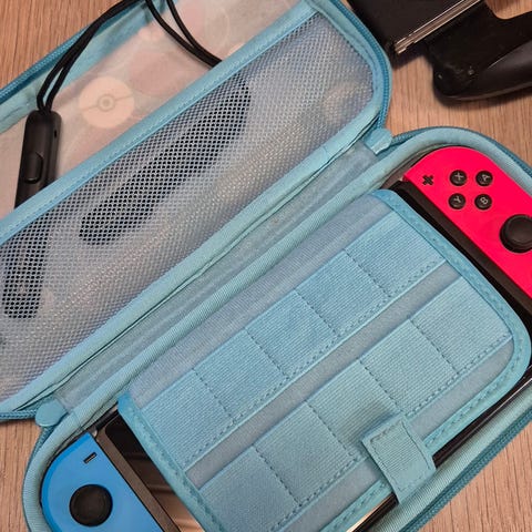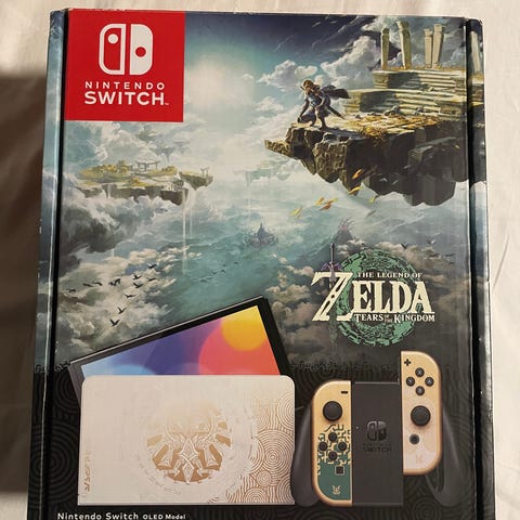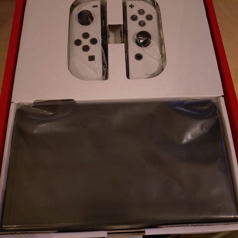 Nintendo Switch konsoll med Joy-Con rød og blå