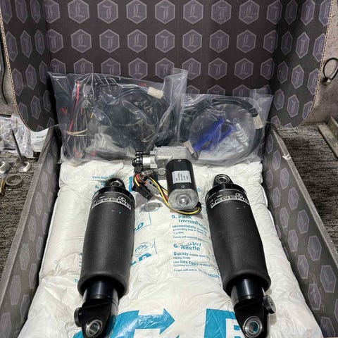 Helt ny ikke brukt stått i garasjen på hylla. Inkluderer kompressor, for montering på sykkelen, bryter slanger og koplinger. Ny pris 26 995,00. Selger pga garasje rydding.