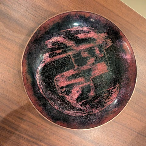 Laget av en beholder av keramikk og flettet bambus. Fantastisk arbeid. Krukken har blitt brukt til å oppbevare ingefær. Nydelig varm farge