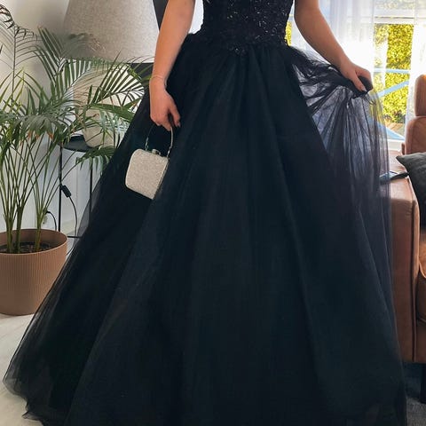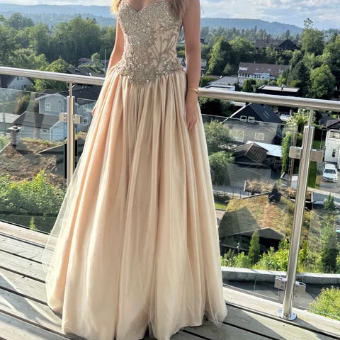 Leier ut min super fine ballkjole💖 passer alt fra en XXS-M på grunn av snøringen bak, jeg på bildene er 168 å den passer meg fint med heler på😊 ingen bruksmerker, definitivt en veldig trendy å klassisk kjole som alle kler🥰🥰