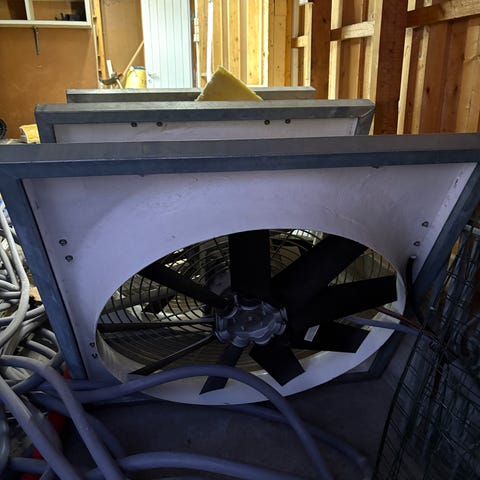 Selling 3 industrial axial wall/plate fans from O.L. Bruvik AS, type BPH 80 P (Ø800). Suitable for extraction/ventilation in workshops, warehouses, construction drying, agriculture, etc.