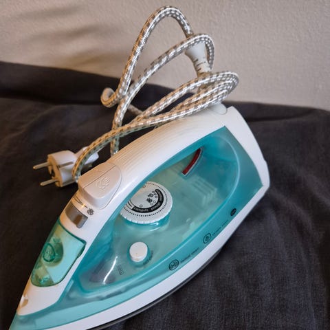 Dampstrykejern som ny. Utstyrt med justerbar temperaturkontroll og dampfunksjon.
