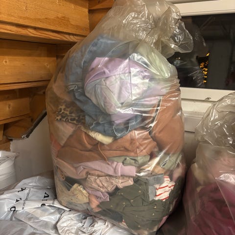 Pakken inneholder: 1 bukse, 4 langermet skjorter, 2 kjoler, og en ull genser