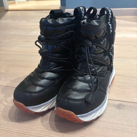 Brukt en halv sesong i fjor, og passet dessverre ikke i år. Vi har kjøpt større av akkurat samme modell siden vi var veldig fornøyd med disse skoene! De er godt brukt, men uten skader. Nyvasket (for hånd) og impregnert. Innersålen mangler fordi vi har brukt ullsåle i og så brukt de videre i noen andre sko. Det er imidlertid enkelt å få tak i ny innersåle på skobutikk.