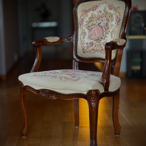 Rokkokostoler,meget pene. Vakkert treverk og broderi..