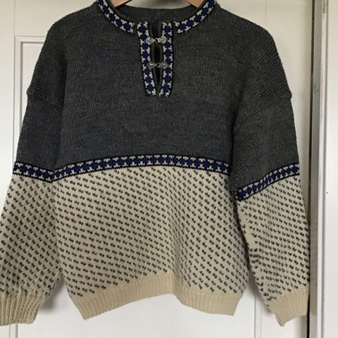 Pent brukt ullgenser str 134-140 cm (9-10 år) i fargene grå, rosa og lilla.